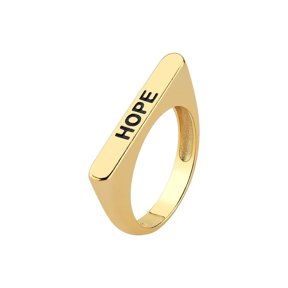 - Anel de aro achatado, com detalhe em resina na palavra " HOPE " (Esperança).- Banho de ouro 18k