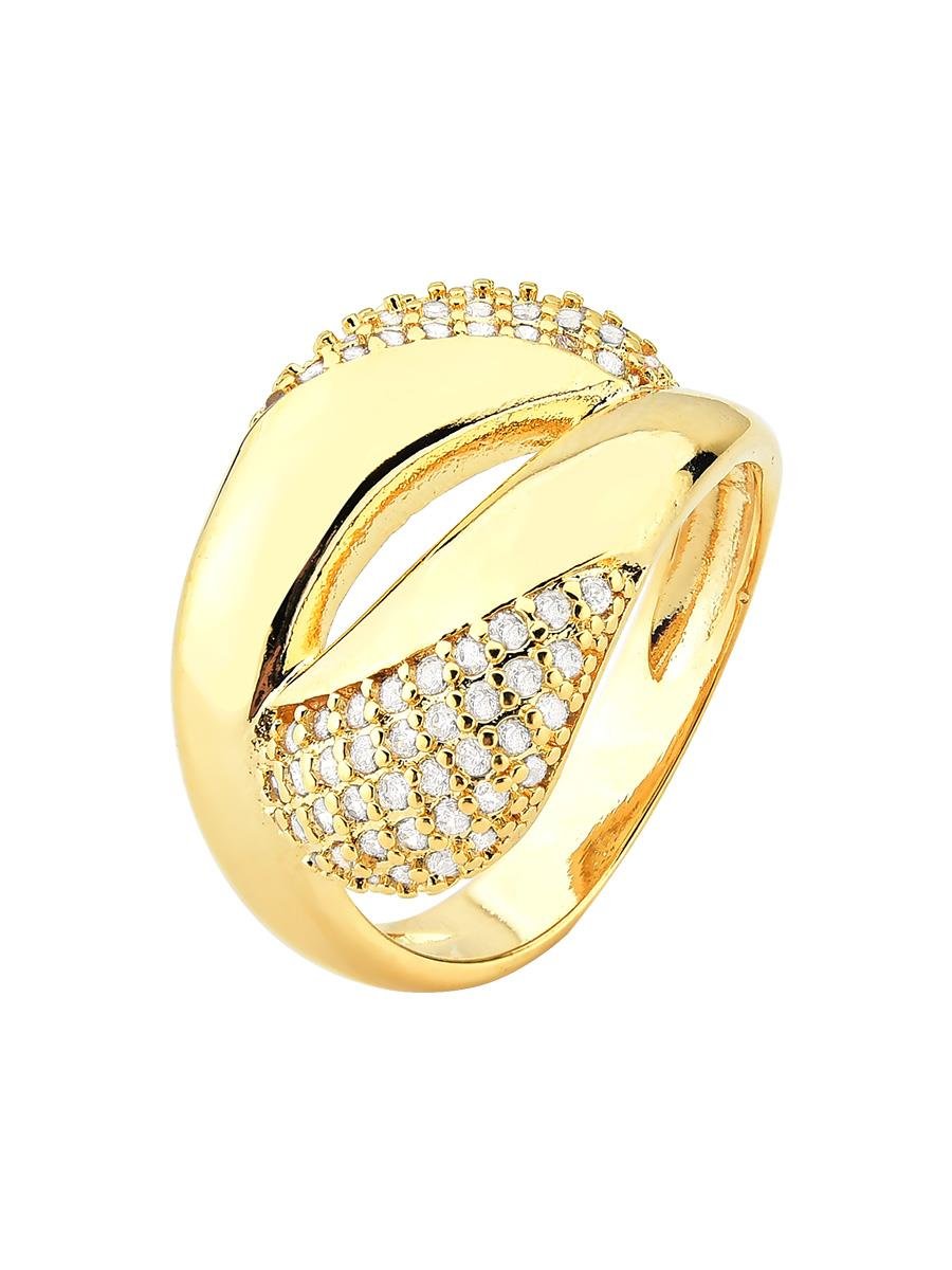 Anel modelo abaulado liso com detalhes cravejados com zircônias incolores, banho de ouro 18k.| Tamanhos | |||||