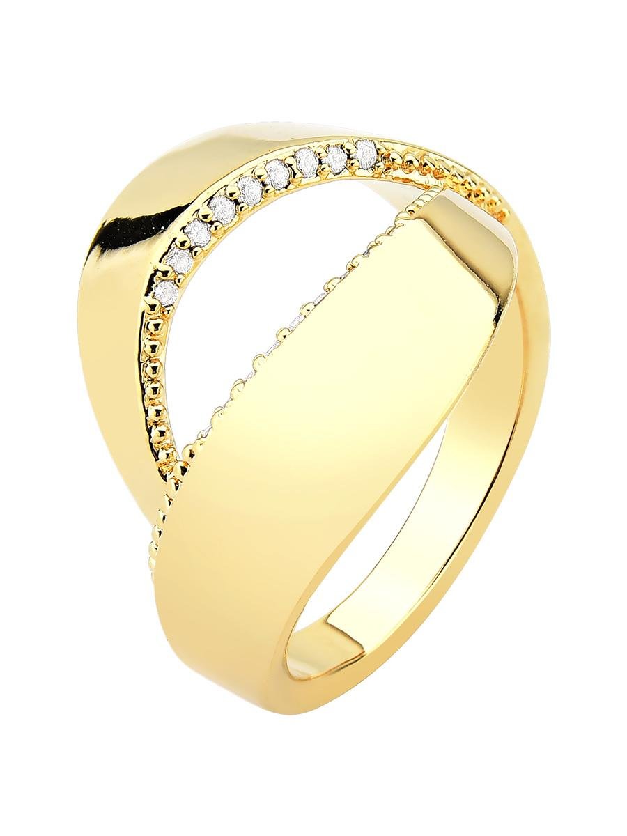 Anel aberto cravejado com zircônias incolores, no banho de ouro 18k.| Tamanhos | |||||