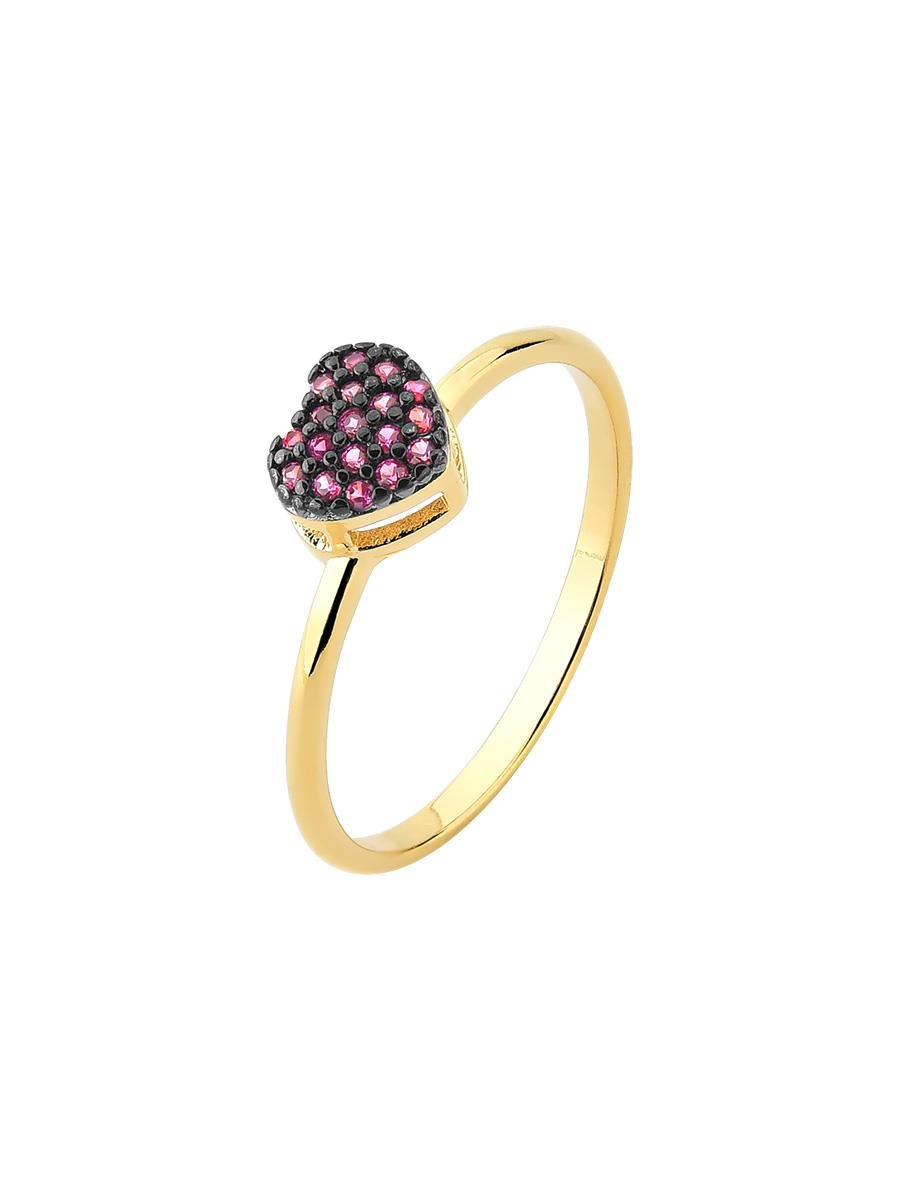 Anel de chuveiro coração cravejado com zircônias rubis e aplique de ródio negro, banho de ouro 18k.| Tamanhos | |||||