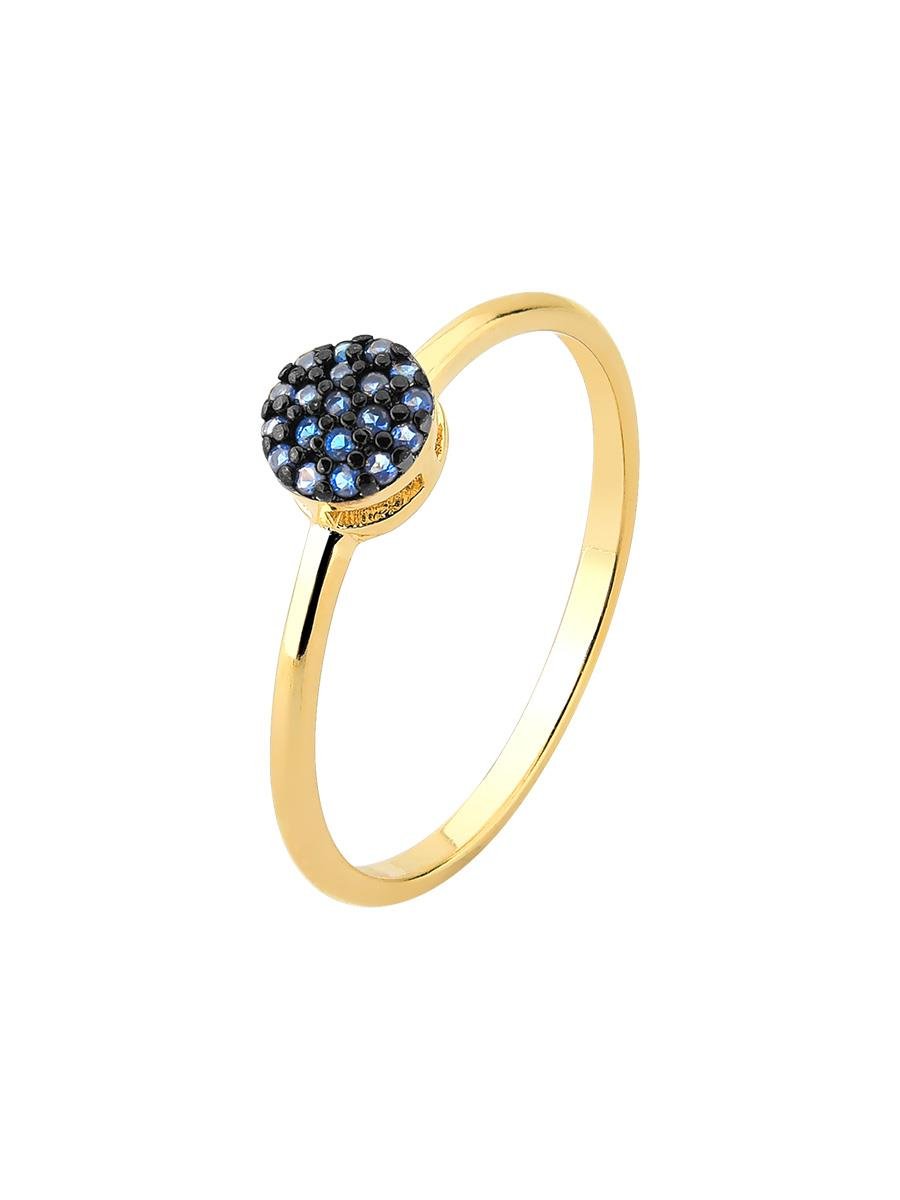 Anel de chuveiro redondo cravejado com zircônias safiras e aplique de ródio negro, banho de ouro 18k.| Tamanhos | |||||