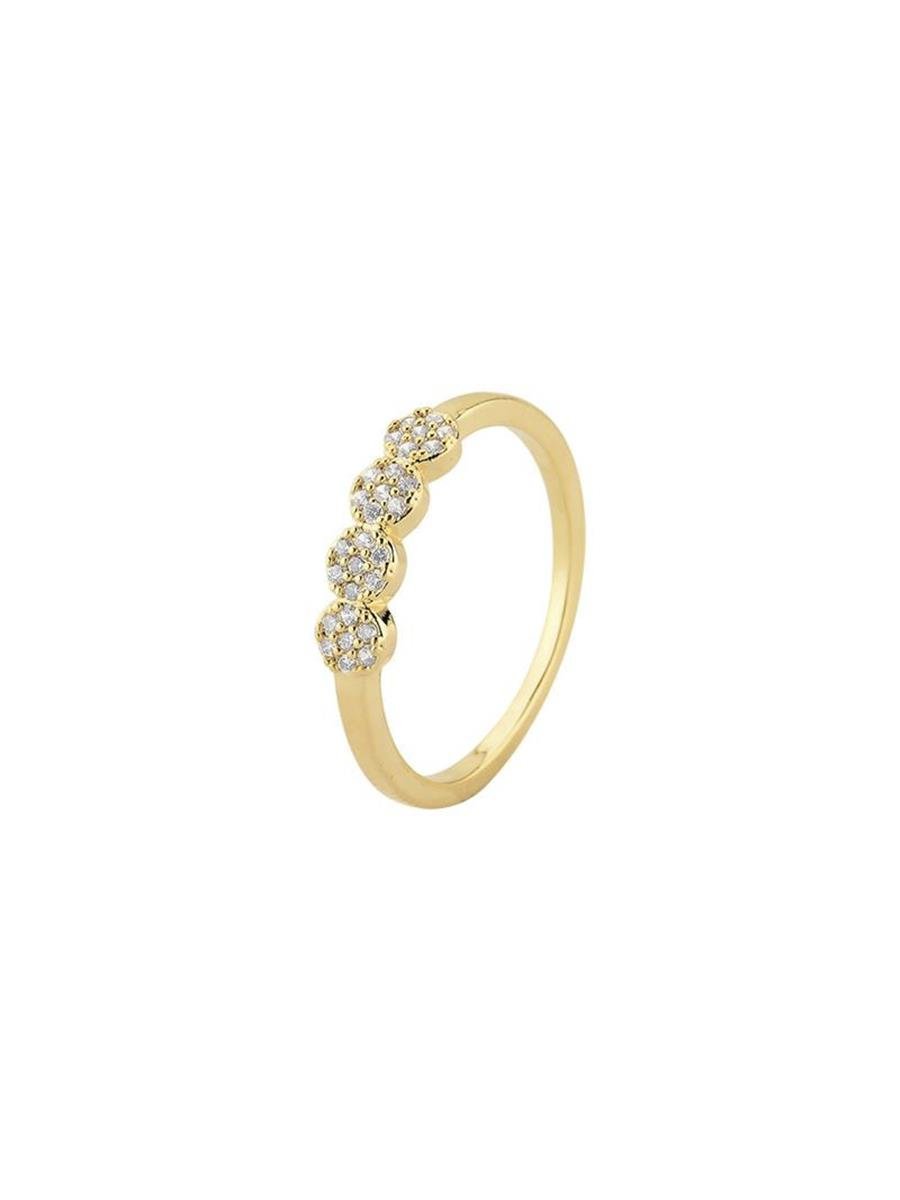 Anel com círculos cravejados de micro zircônia incolor, banhado a ouro 18K.