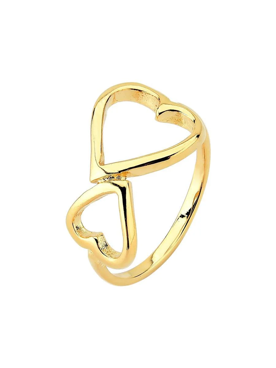 2. Anel Coração Duplo Vazado | Banhado a Ouro