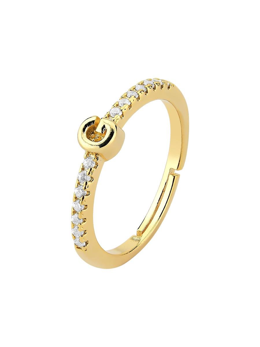 Anel regulável cravejado com micro zircônias incolor e letra "G" lisa, banho de ouro 18k.| Tamanhos | |||||