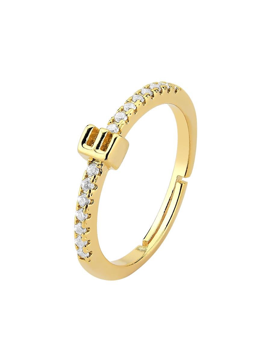Anel regulável cravejado com micro zircônias incolor e letra "E" lisa, banho de ouro 18k.| Tamanhos | |||||