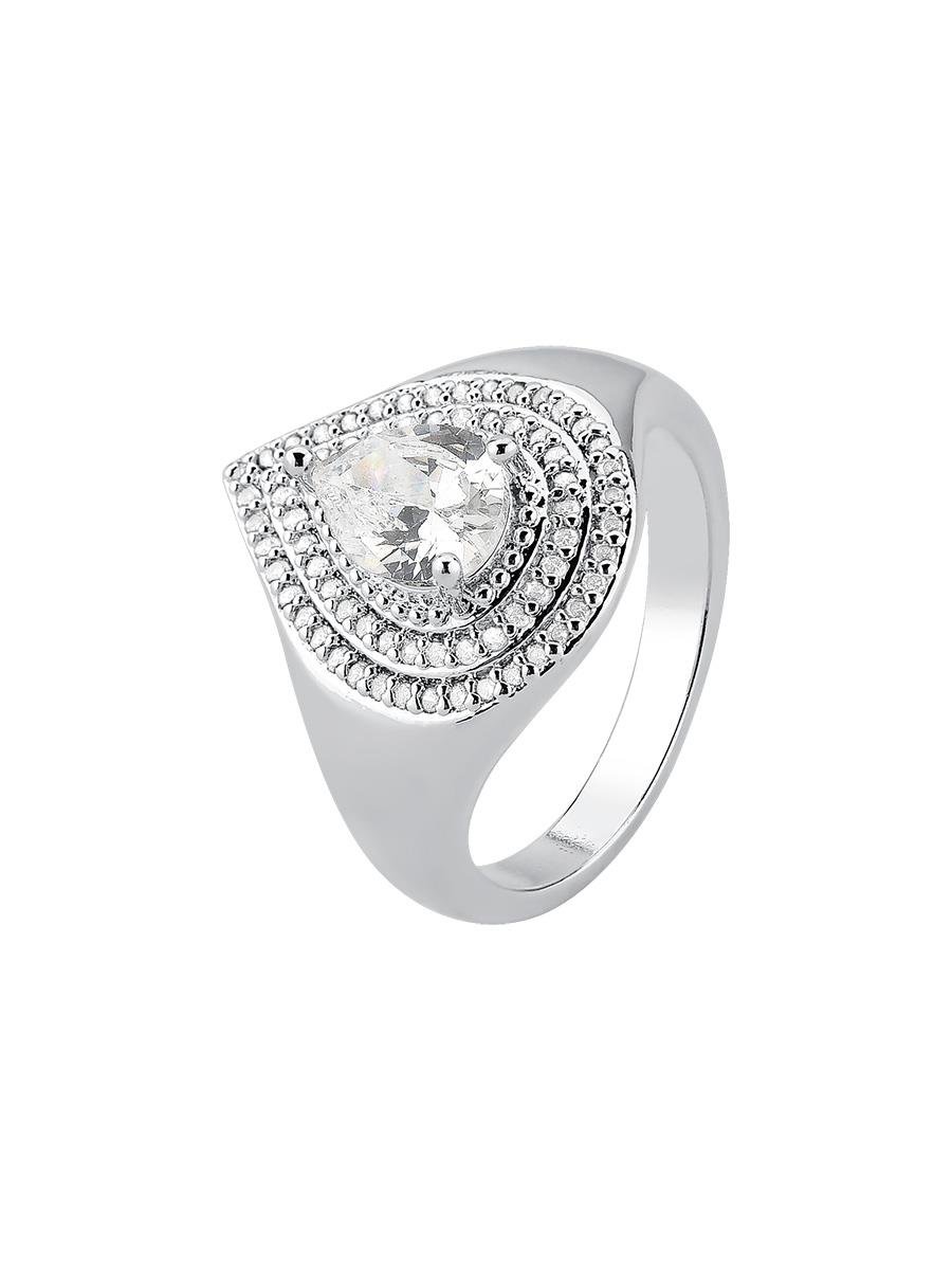 Anel cravejado com micro zircônias incolor e cristal em formato de gota incolor, banho de prata.| Tamanhos | |||||