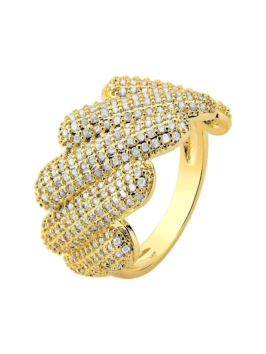Anel cravejado com zircônias incolores, banho de ouro 18k.| Tamanhos | |||||
