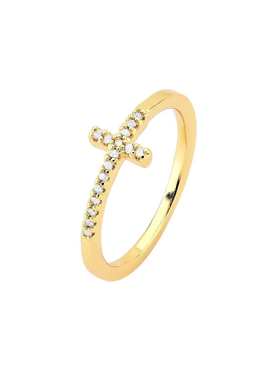 Anel Cruz Cravejada Banhada a Ouro 18k.A coleção Corpo e Alma foi pensada para revendedoras que querem ter em seu mostruário peças vendáveis. Essa coleção traz semijoias lisas, modernas e delicadas, perfeitas para agradar diferentes estilos de clientes. São peças versáteis e atuais, como anéis em alta, correntarias para todas as ocasiões e brincos orgânicos maxi, tendência da nova estação e aposta certa para atrair novas clientes. Atualize seu mostruário com uma coleção feita para vender com estilo, estratégia e desejo em cada detalhe.