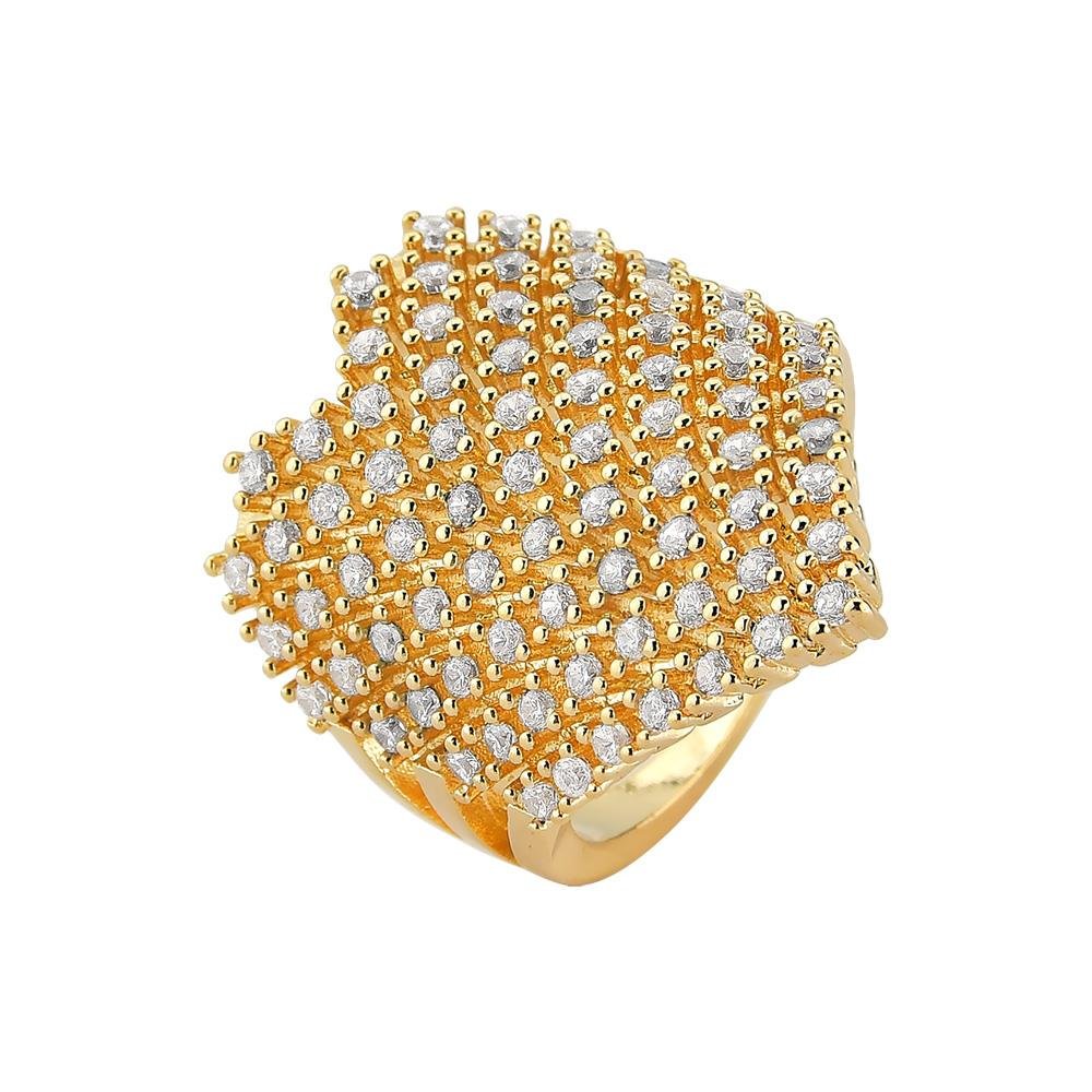 - Anel em formato de coração cravejado com zircônias incolor.- Banho de ouro 18K.
