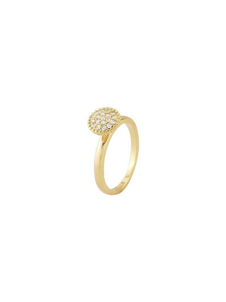 Anel modelo chuveiro redondo, cravejado com micro zircônia incolor, banhado a ouro 18K.