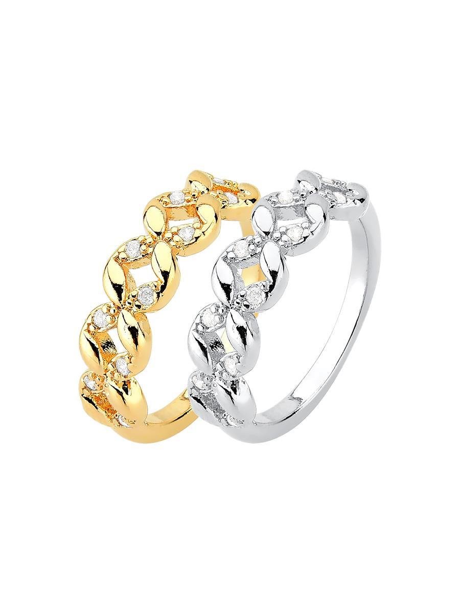 Anel Duplo Vazado Liso e Cravejado Falange Banhado a Ouro 18K e Prata.As Novidades de Fevereiro foram pensadas para quem deseja revender semijoias com mais facilidade e montar uma maleta moderna e versátil. Inspirada no conceito de duas peças na mesma cartela, essa coleção reúne semijoias minimalistas e atemporais, com modelos que incluem pérolas, colares, mistura de banhos, argolas e braceletes, ideais para atender diferentes estilos de clientes.