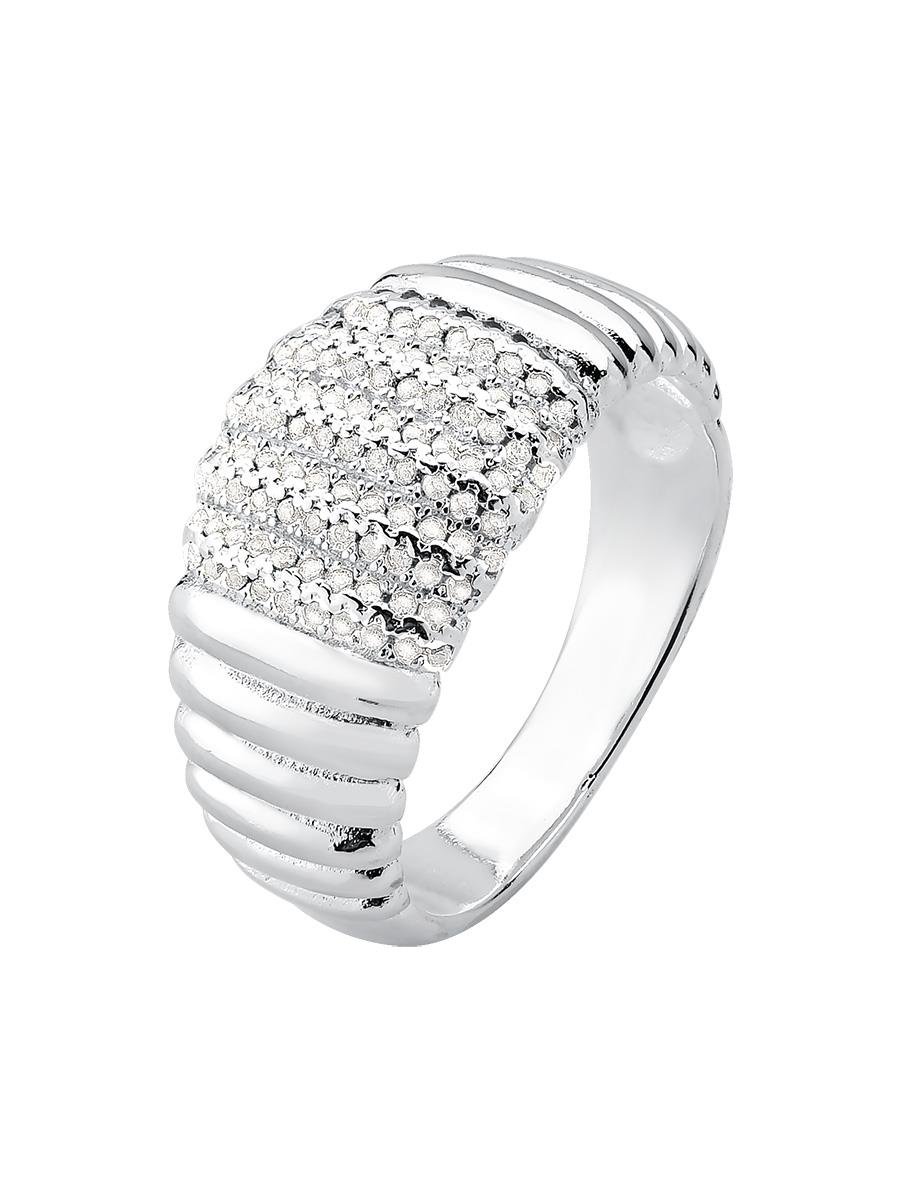 Anel com detalhes lisos e cravejados com zircônias incolores, banho de prata.| Tamanhos | |||||