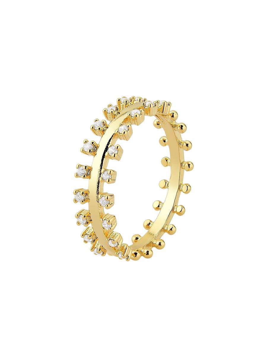 - Anel com detalhes de ponto de luz incolor.- Banho de ouro 18k.
