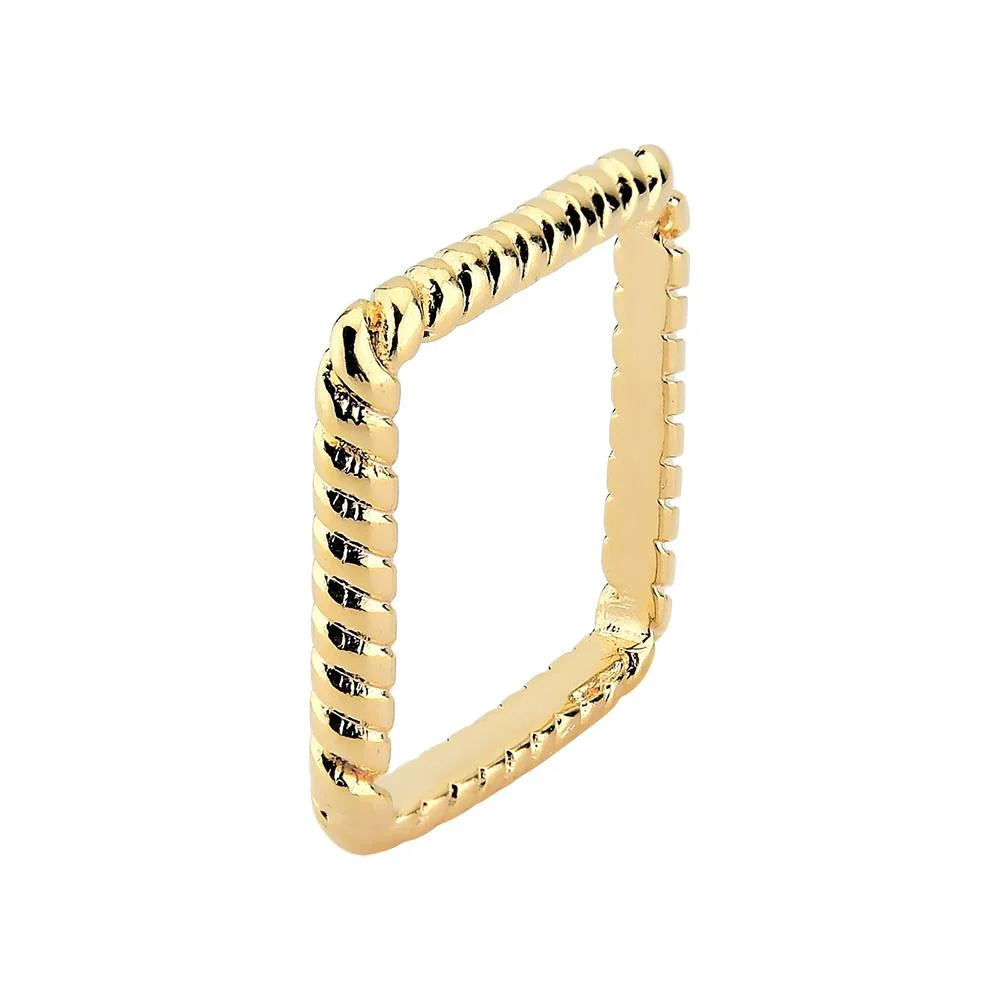 - Anel de aro fino torcido com design quadrado.- Banho de ouro 18K.