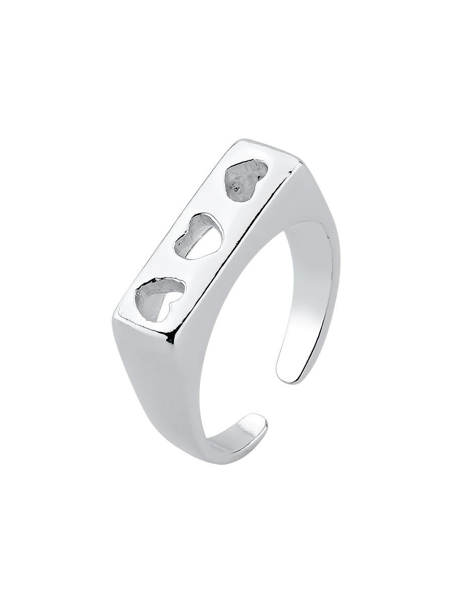 Anel dedinho regulável de traço om três corações vazados, banho de prata.| Tamanhos | |||||