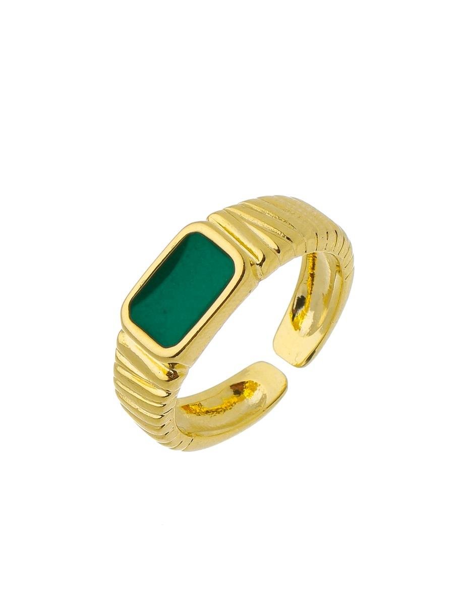 - Anel de aro largo com resina verde.- Banho de ouro 18K.