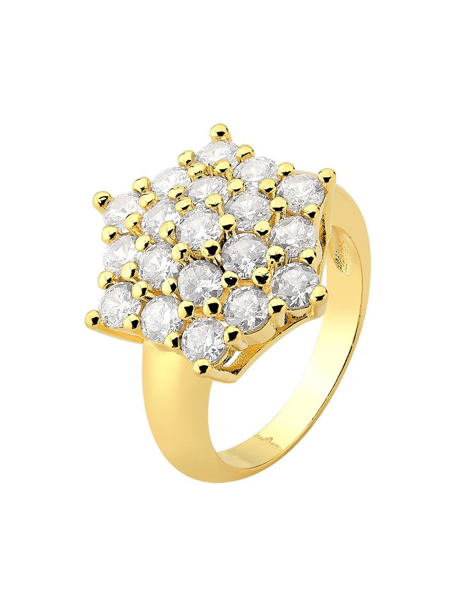 Anel em formato exagonal cravejado com zircônias incolores, banho de ouro 18k.| Tamanhos | |||||