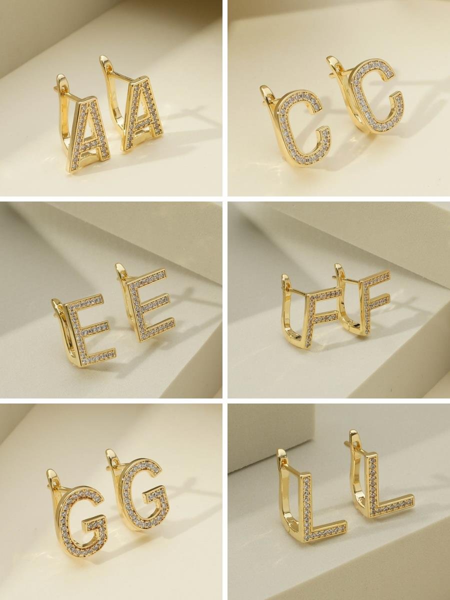 - Brinco modelo argola em formato de letra cravejada em micro zircônia incolor.- Banho de ouro 18K.