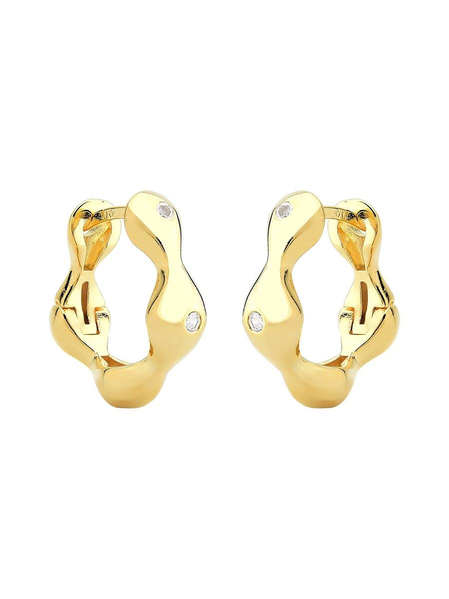 Brinco de argola com gominhos lisos com detalhe cravejado com zircônias incolores, banho de ouro 18k.| Altura | 2.0 cm |