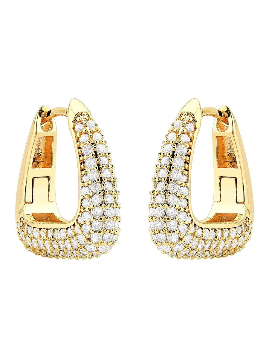 Brinco de meia argola triangularl cravejada com zircônias incolores, banho de ouro 18k.| Altura | 2.0 cm |