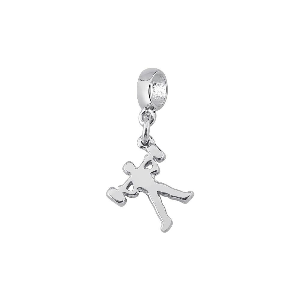 Berloque com pingente liso em formato de fisiculturista, em banho de platina.