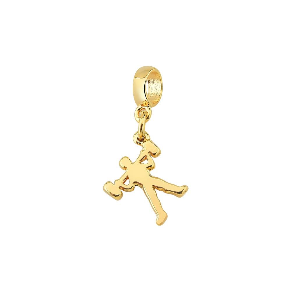 Berloque com pingente liso em formato de fisiculturista, em banho de ouro 18k