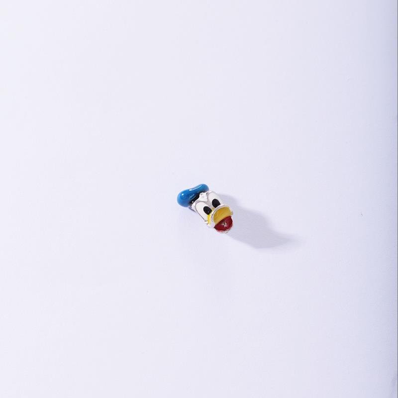 Berloque em formato de personagem infantil, com detalhes em resina, banhado em ródio Branco.