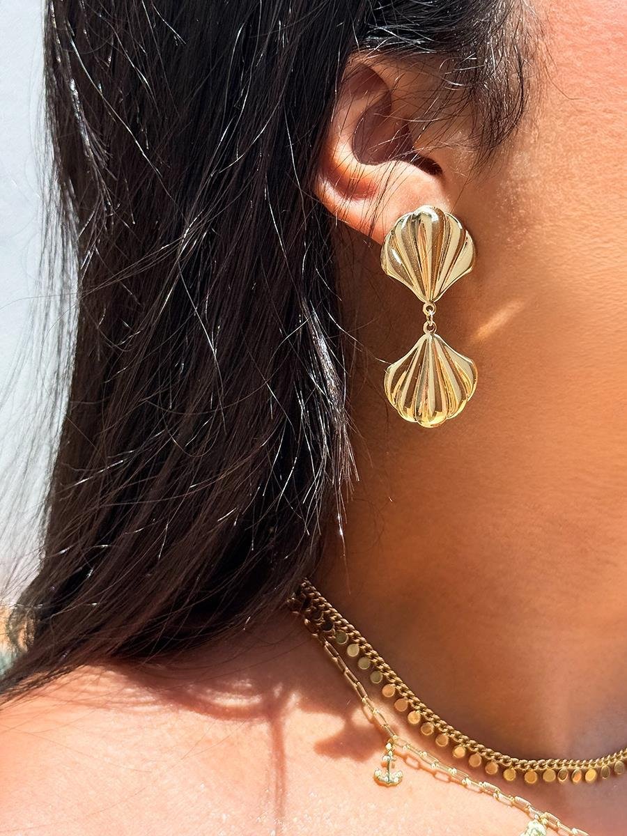 Brinco Concha Dupla Banhado a Ouro 18K.A cápsula Summer Part II é inspirada no mar, na brisa da praia e na beleza natural das pérolas. A coleção reúne peças leves, femininas e atuais, pensadas para o clima do verão. Com um design versátil e atemporal, as semijoias acompanham diferentes momentos do dia, do look casual ao mais arrumado, sempre com um toque de leveza e estilo. São peças que combinam com o verão, mas continuam fazendo sentido em qualquer estação.