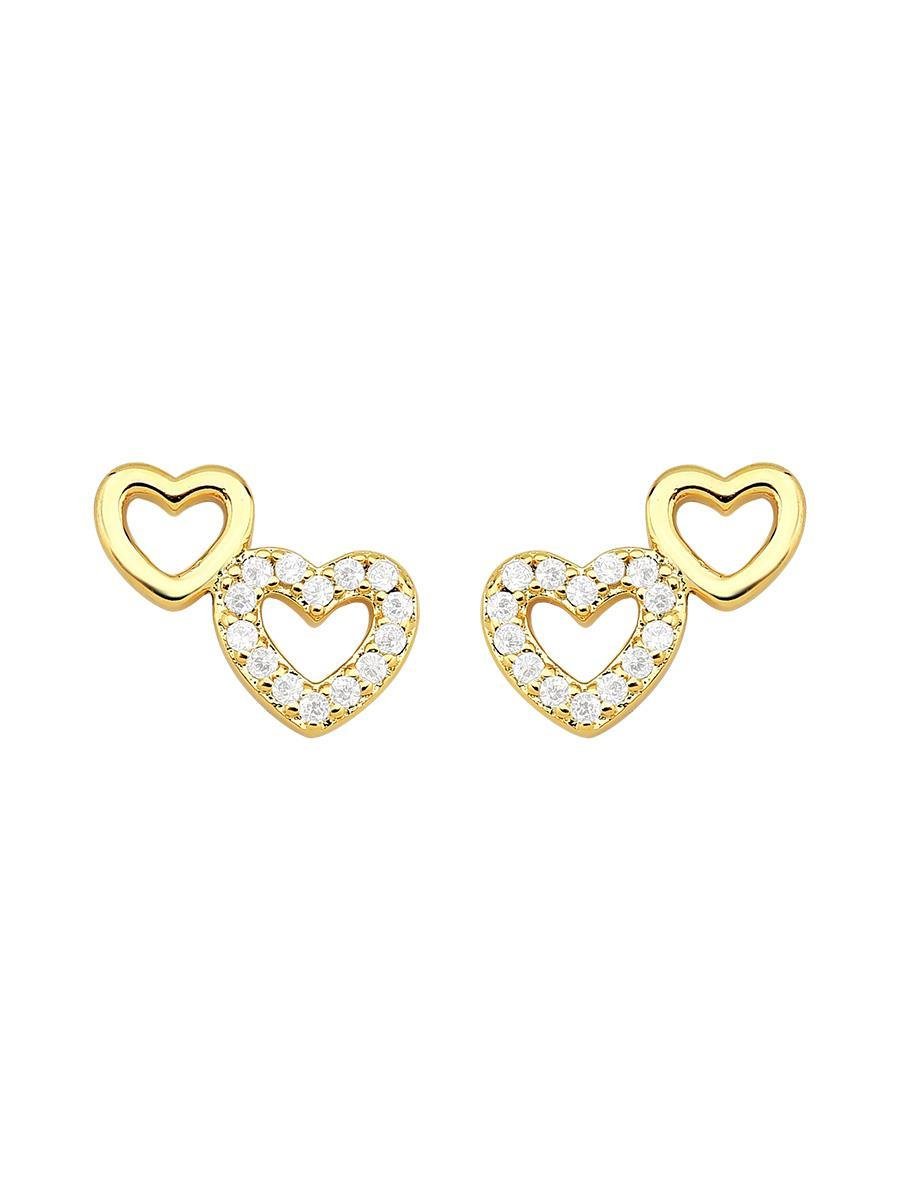 Brinco Coração Duplo Cravejado Banhado a Ouro 18k.Coleção Alma de Mulher: peças exclusivas para suas maiores vendas do ano!