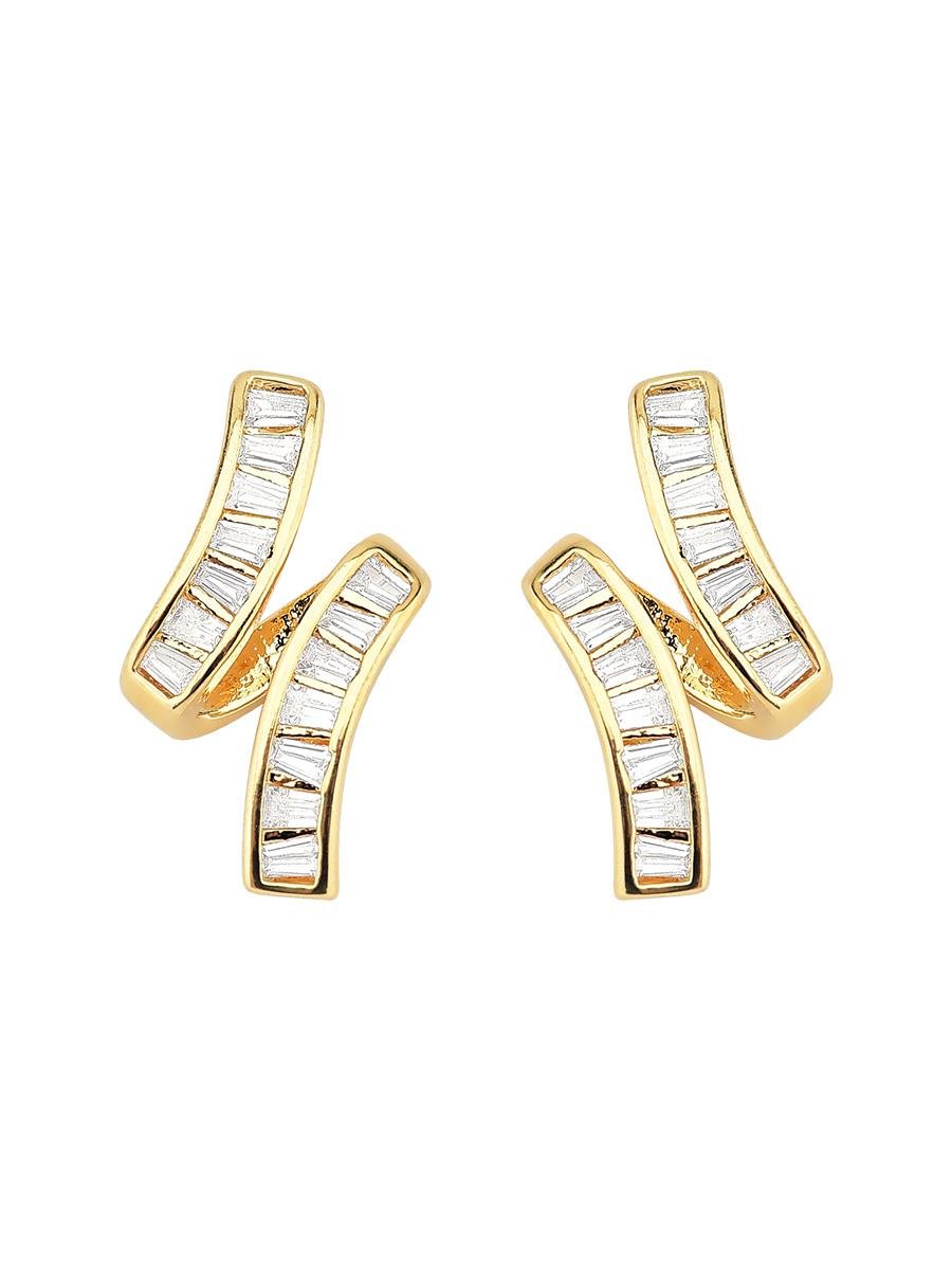 Brinco em formato de N cravejado de zircônias em formato de baguetes incolores, banho de ouro 18k.| Altura | 1.6 cm |