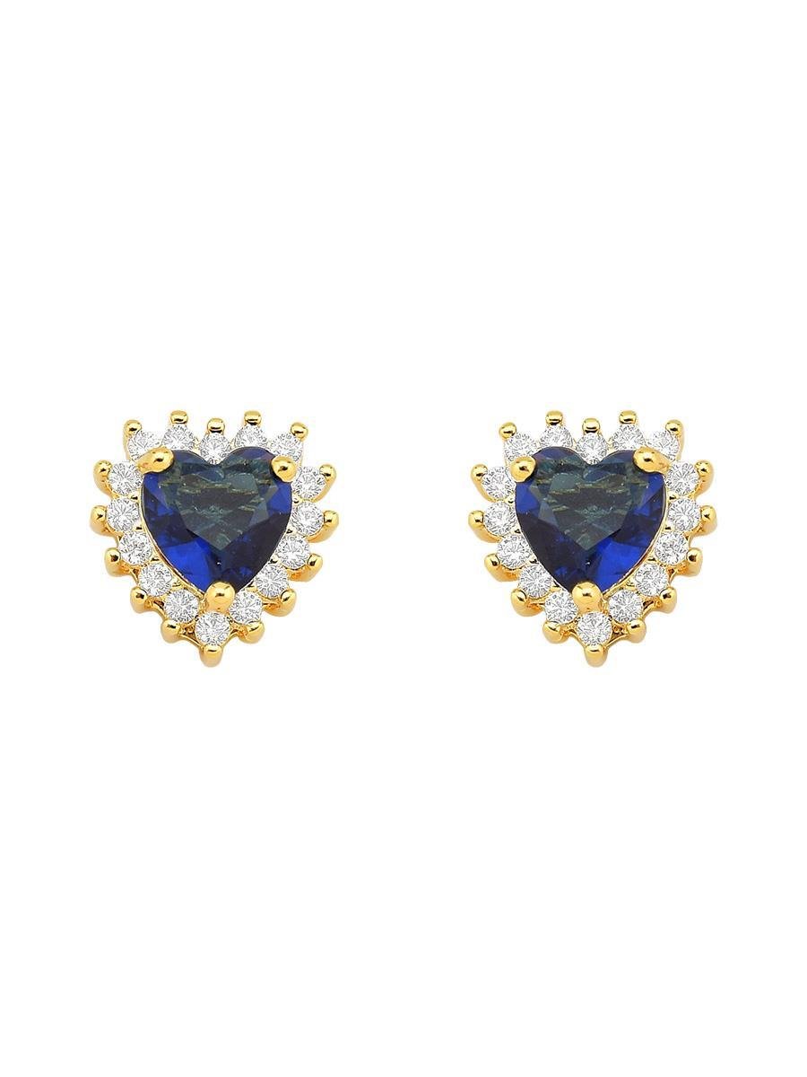 Brinco de Coração Safira Cravejado Banhado a Ouro 18k.Coleção Alma de Mulher: peças exclusivas para suas maiores vendas do ano!