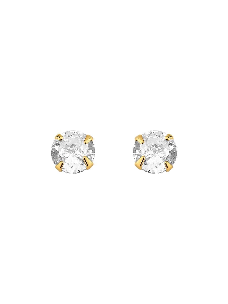 Brinco modelo ponto de luz com zircônia incolor, banhado em ouro 18k.| Tamanhos | |