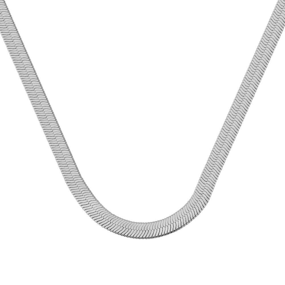 Colar modelo choker de malha fita, banho de prata.
