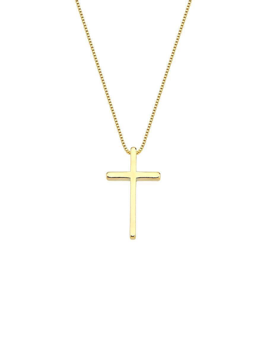 Colar com Cruz 45CM Banhado a Ouro 18k.O material de base das nossas semijoias é composto por uma liga metálica de cobre e zinco, que recebe um banho de ouro. Além do banho, aplicamos uma camada de verniz protetor que aumenta a durabilidade das peças. Nossas semijoias não possuem níquel em sua composição, e utilizamos banho de paládio, tornando-as hipoalergênicas. Contamos com banho próprio, o que nos permite oferecer garantia eterna nas peças e preço de fábrica.