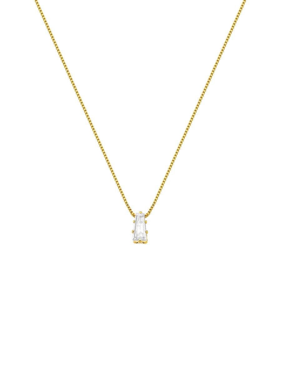 - Colar composto por corrente veneziana fina e pingente de ponto de luz incolor.- Banho de ouro 18k.