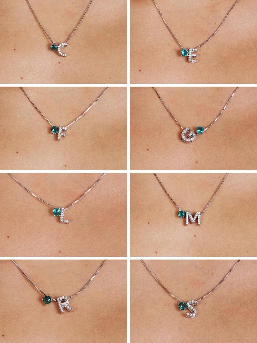 - Colar de corrente veneziana com pingentes de ponto de luz turmalina e letra G cravejada com micro zircônia incolor.