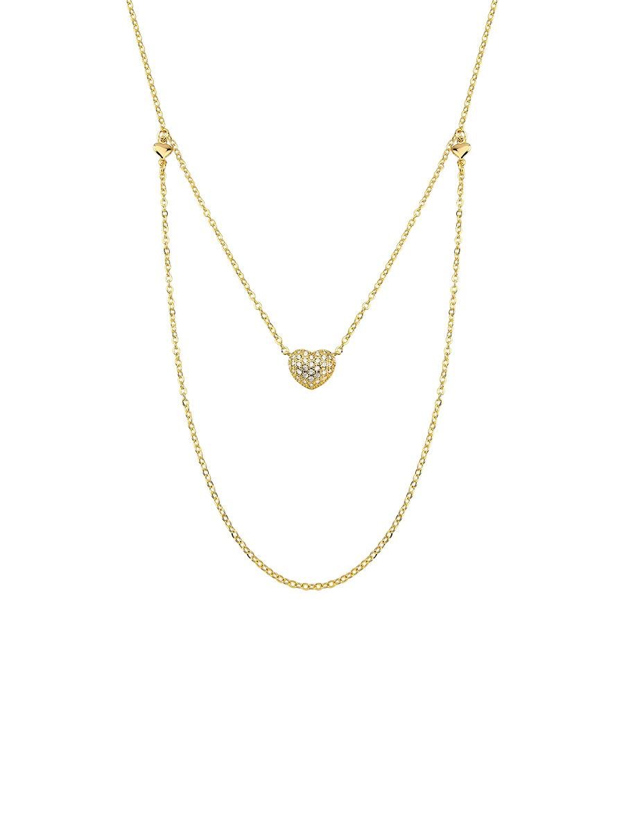 Colar de elo cadeado com pingente de coração cravejado com micro zircônias incolor, banho de ouro 18k.| Tamanhos | |
