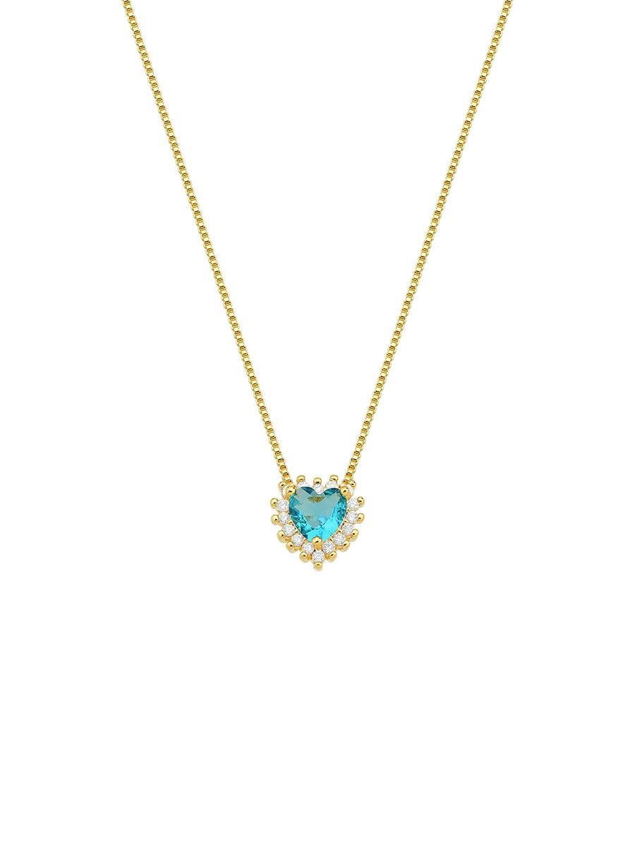 Colar Coração Turquesa Cravejado Banhado a Ouro 18k.Coleção Alma de Mulher: peças exclusivas para suas maiores vendas do ano!