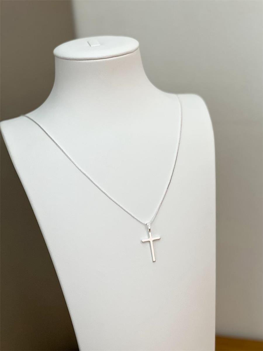 Colar Cruz Lisa Masculino Banho de Prata.Nossas semijoias lisas são a escolha perfeita para quem aprecia o design minimalista e a sofisticação discreta. Com acabamento impecável e um brilho sutil, essas semijoias trazem elegância e modernidade em uma estética clean. As superfícies lisas, sem detalhes ou texturas adicionais, garantem um visual versátil que pode ser facilmente combinado com outros acessórios, criando composições equilibradas e sofisticadas para o seu mostruário. Ideais tanto para o uso diário quanto para ocasiões especiais, as peças lisas são atemporais, trazendo uma beleza que nunca sai de moda.