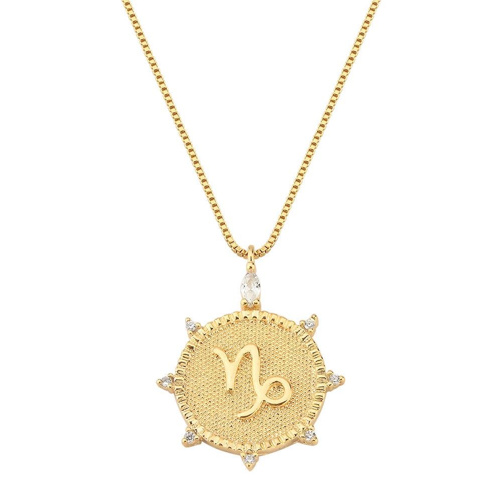 Colar com corrente veneziana e pingente de signo com detalhe em zircônia incolor, folheado a ouro 18K.