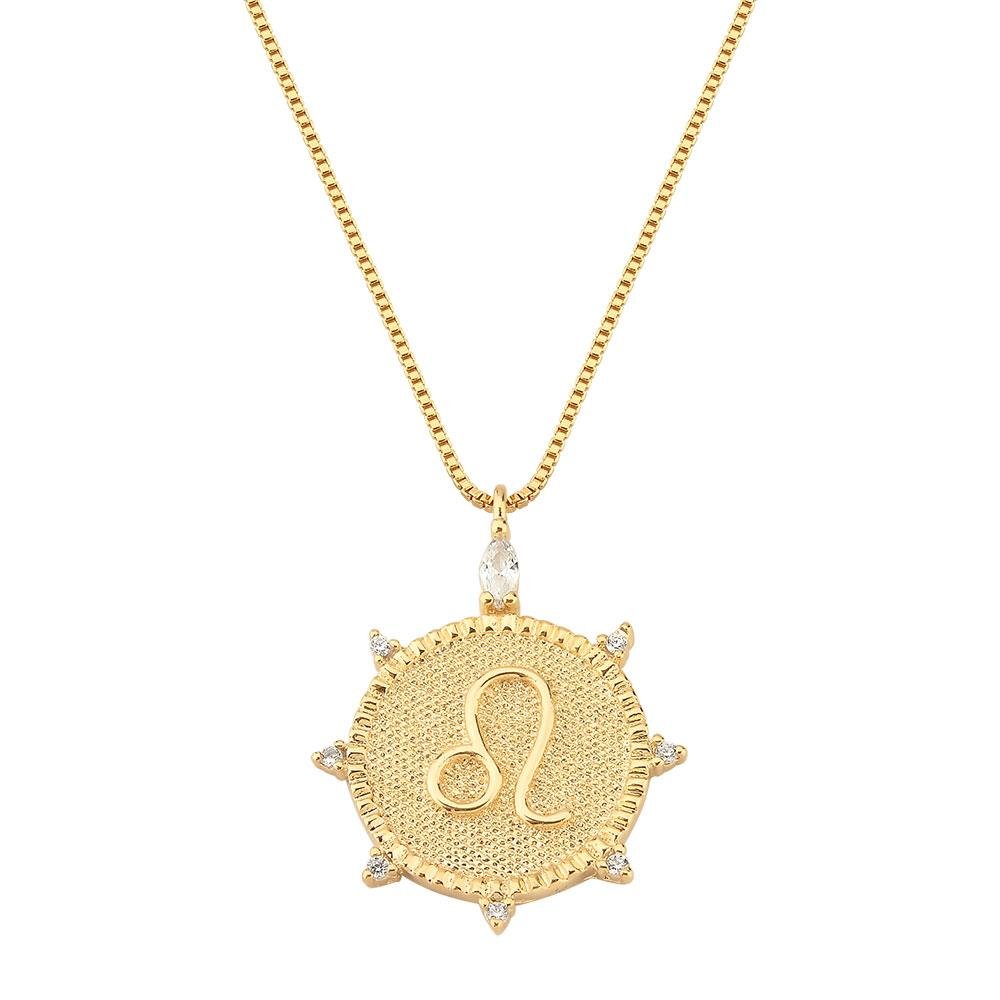 Colar com corrente veneziana e pingente de signo com detalhe em zircônia incolor, folheado a ouro 18K.