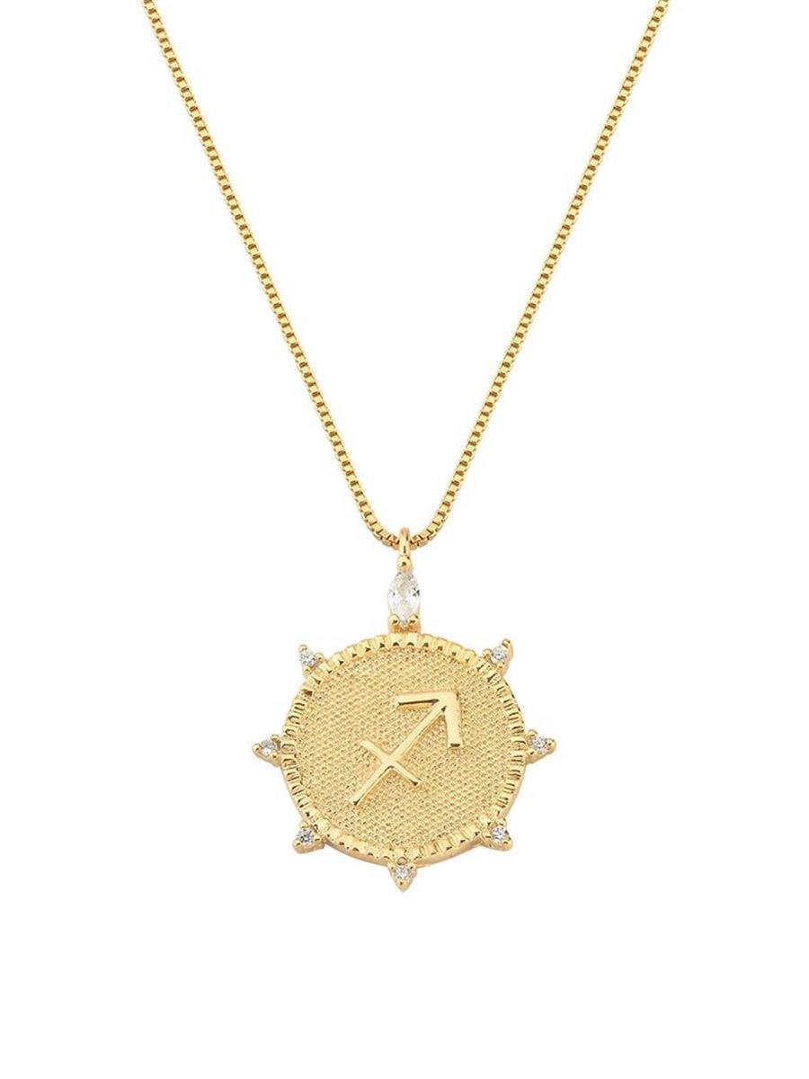 Colar com corrente veneziana e pingente de signo com detalhe em zircônia incolor em banho de ouro 18K.