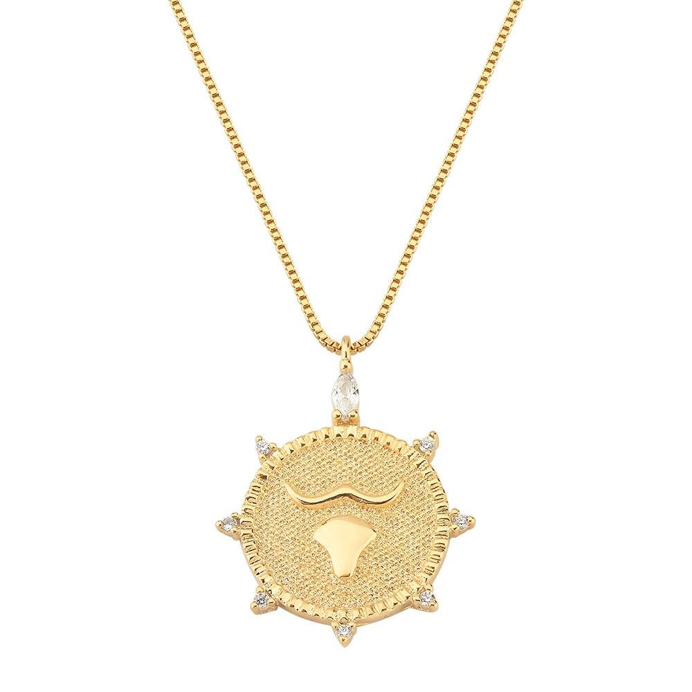 Colar com corrente veneziana e pingente de signo com detalhe em zircônia incolor, folheado a ouro 18K.