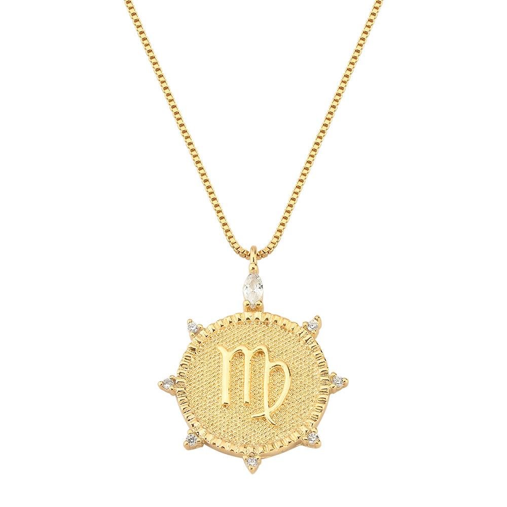 Colar com corrente veneziana e pingente de signo com detalhe em zircônia incolor, folheado a ouro 18K.