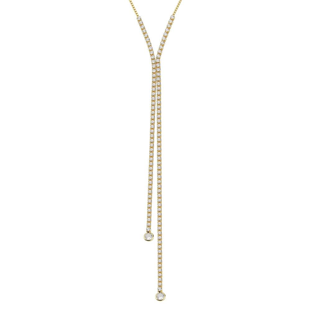 Colar de corrente veneziana e detalhe em micro zircônias incolores, banho de ouro 18K.| Tamanhos | |