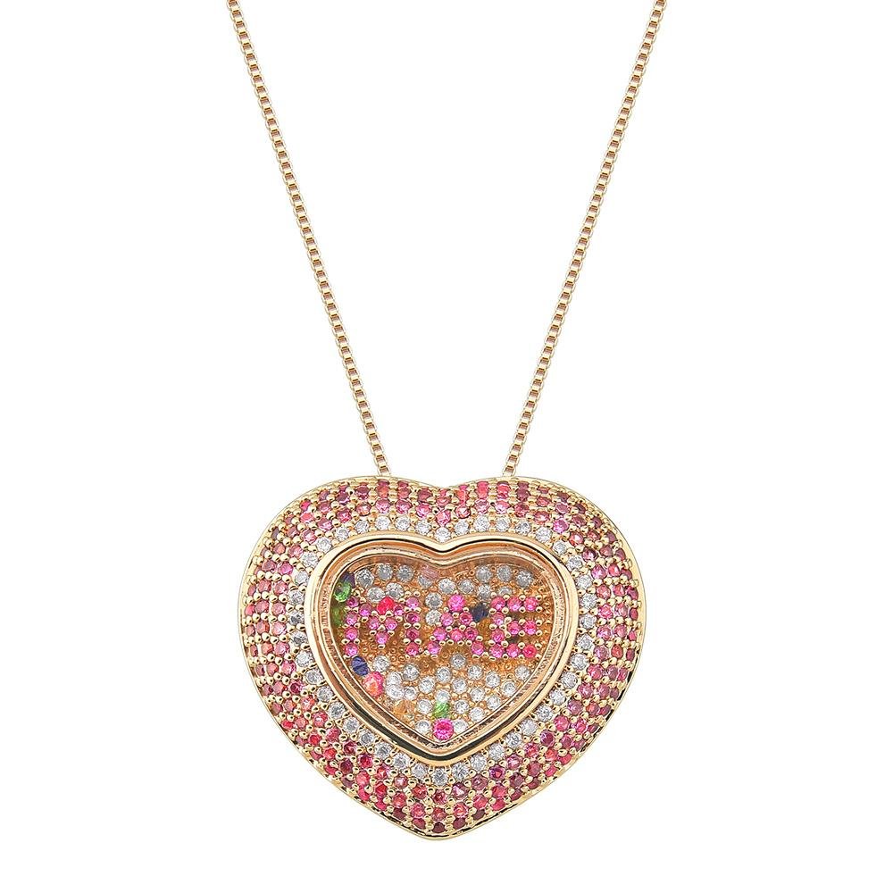 - Colar regulável com corrente veneziana e pingente em formato de coração, cravejado com micro zircônias rubi, rosa e incolor, com a palavra " Mãe".- Banho em ouro 14K.