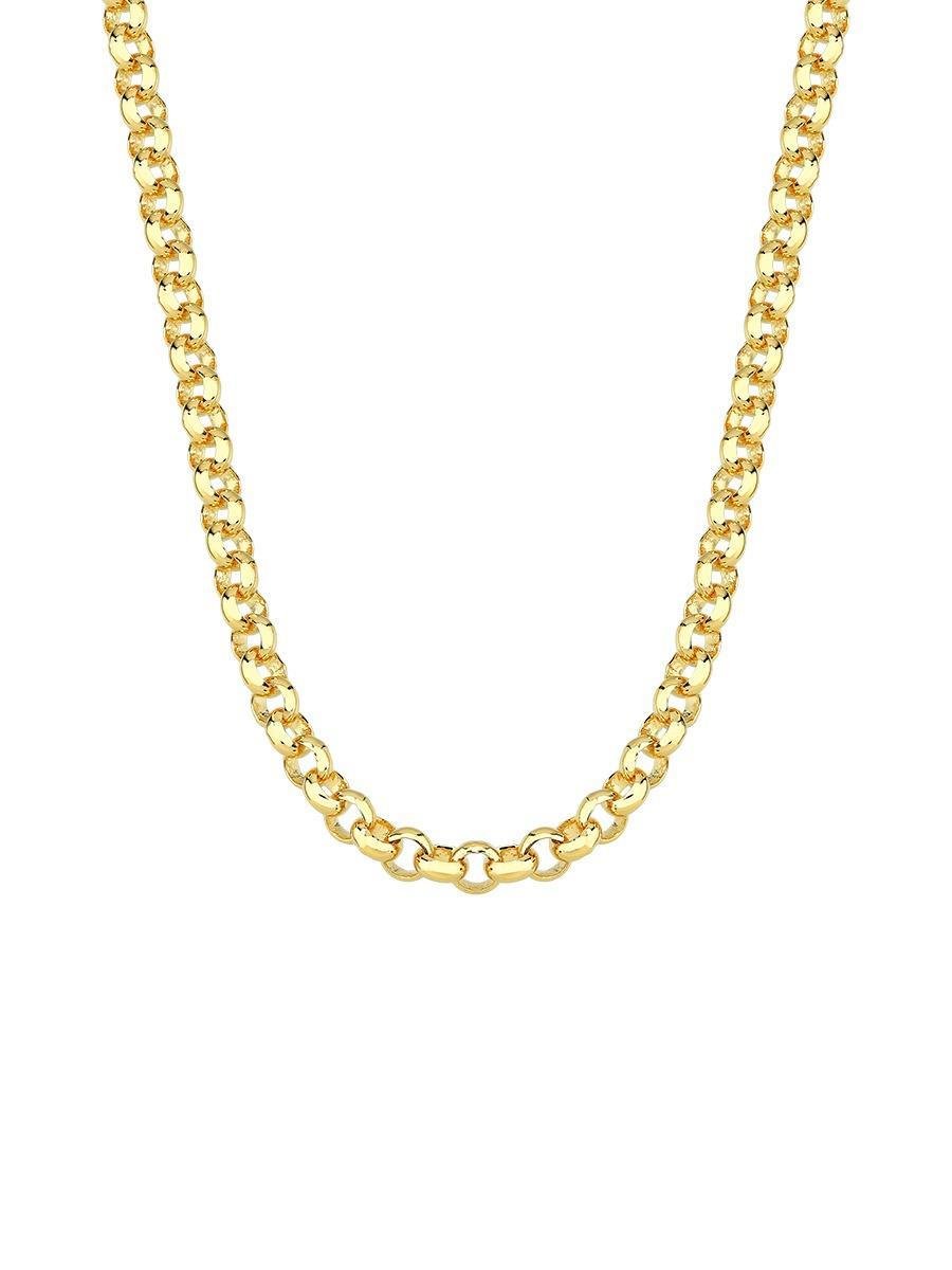 Colar Elo Português Grosso Banhado a Ouro 18kO material de base das nossas semijoias é composto por uma liga metálica de cobre e zinco, que recebe um banho de ouro. Além do banho, aplicamos uma camada de verniz protetor que aumenta a durabilidade das peças. Nossas semijoias não possuem níquel em sua composição, e utilizamos banho de paládio, tornando-as hipoalergênicas. Contamos com banho próprio, o que nos permite oferecer garantia eterna nas peças e preço de fábrica.