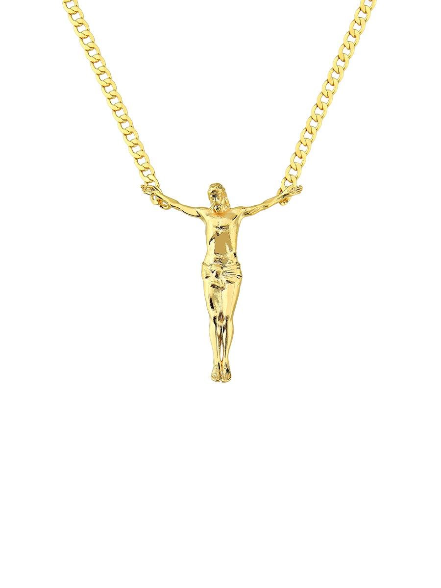 Colar elos grumet abertos com pingente de "Jesus", banho de ouro 18k.: