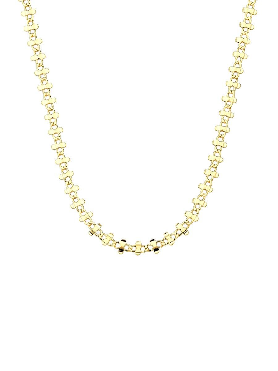 Colar de elos lisos com detalhes, banho de ouro 18k.| Comprimento | 30 cm (mais 10 cm de extensor) |