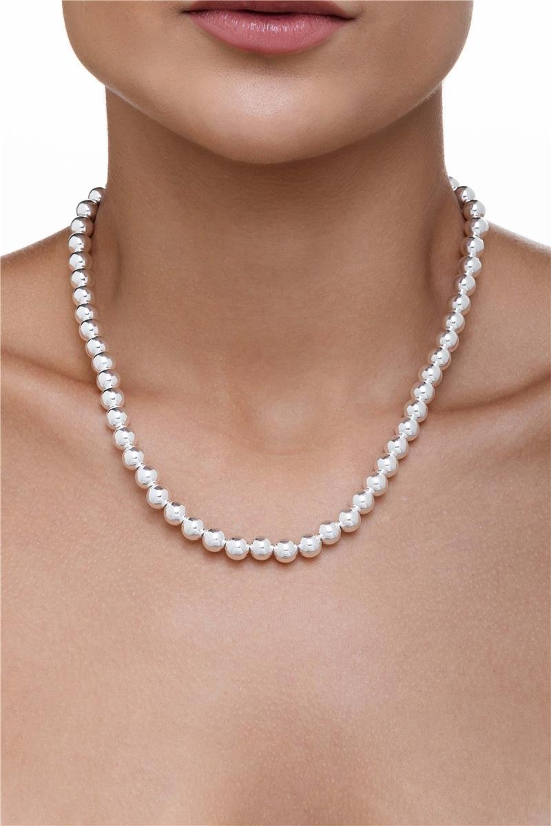 Colar esferas lisas, no banho de prata.| Comprimento | 45 cm (mais 5 cm de extensor) |